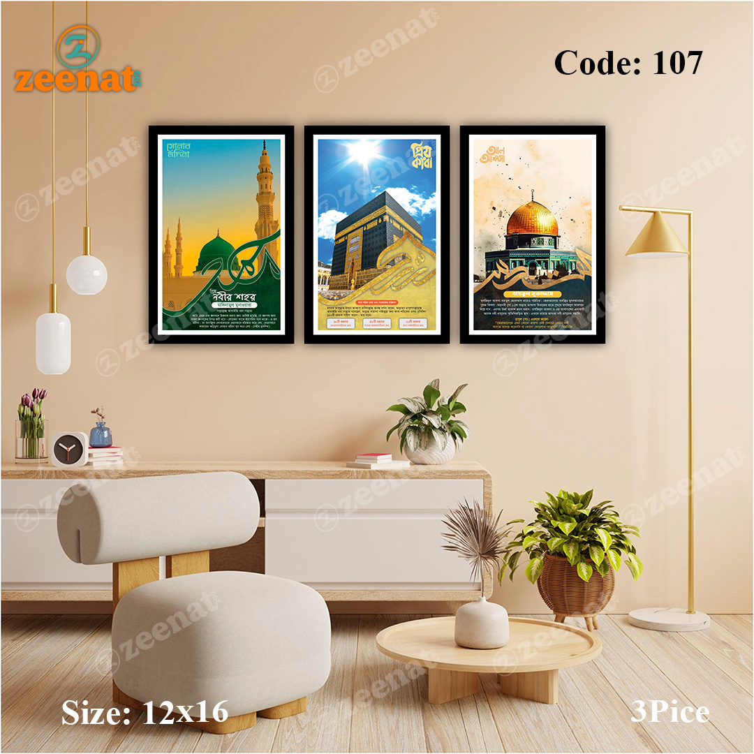 মক্কা, মদিনা ও আল আকসা ওয়ালমেট ডিজাইন আপনার ঘরে আনবে পবিত্রতার আবহ। লিভিং রুম বা প্রার্থনার জায়গায় এক অনন্য সংযোজন।